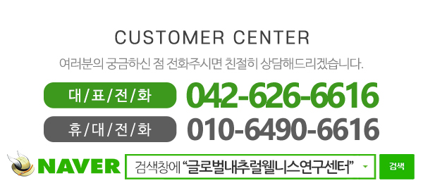 글로벌내추럴웰니스연구센터 | 대표 : 전기열 | 전화 : 042-626-6616